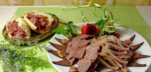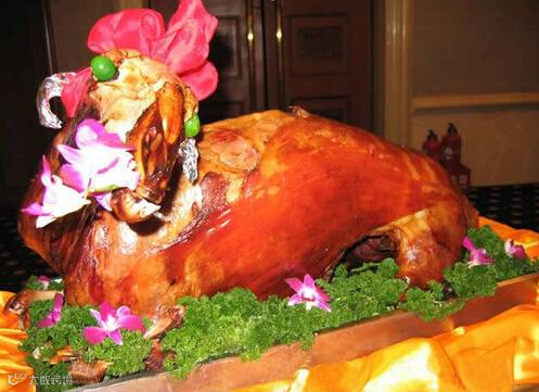 这道菜也是和驴过不去,将活驴固定好,旁边放上烧沸的老汤。食用者指定要吃某一部分,厨师剥下那一块的驴皮,露出鲜肉。用木勺舀沸汤浇那块肉,等浇得肉熟了再割下来,装盘上桌。