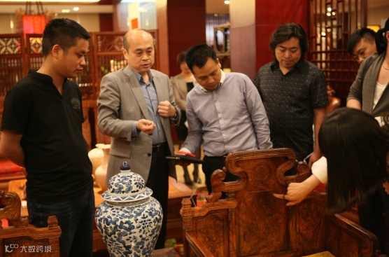 海翔家具董事长王立辉先生详细的向老师们讲解越南黄花梨的产品材质及工艺