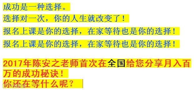 1、直接拨打陈安之老师助理的电话:150-1794-5333陈泓宇老师申请课程名额!