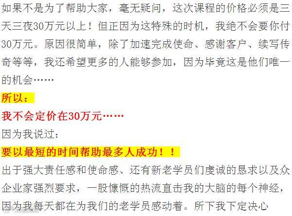 其实,最贵的也是最便宜的,因为您第一次就把事情做对了,不至于这里上一个小课程,那里上一个小课程,上一大圈非常便宜的小课程,站在台上的老师没有世界级成功的实战经验,耽误您前进的时间,缩小了您的格局,其实这才是最贵的,您说是吗?