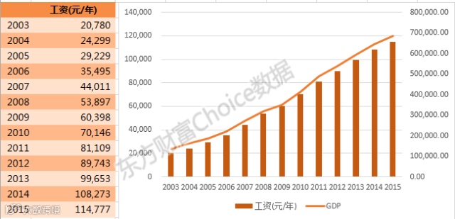 十几年来,随着中国经济的高速发展,金融行业的平均工资已经增长数倍,不过令人遗憾的是,金融行业工资的增速并没有比GDP增长更快,两者几乎是完全同步的。