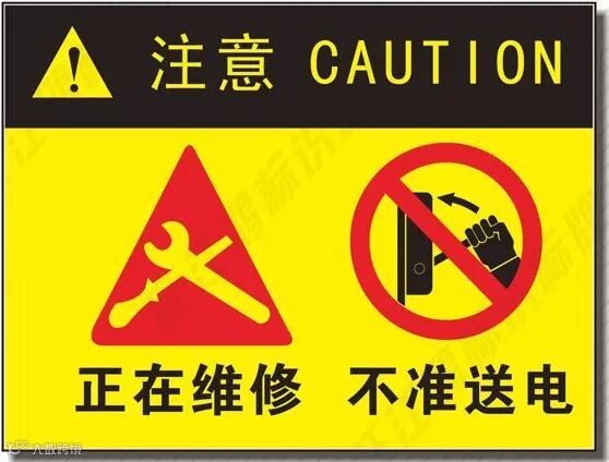为了保证工作人员的安全,检修固定式液压升降平台前必须断开电源,并且必须验电并悬挂“禁止送电,有人工作”的标识牌。