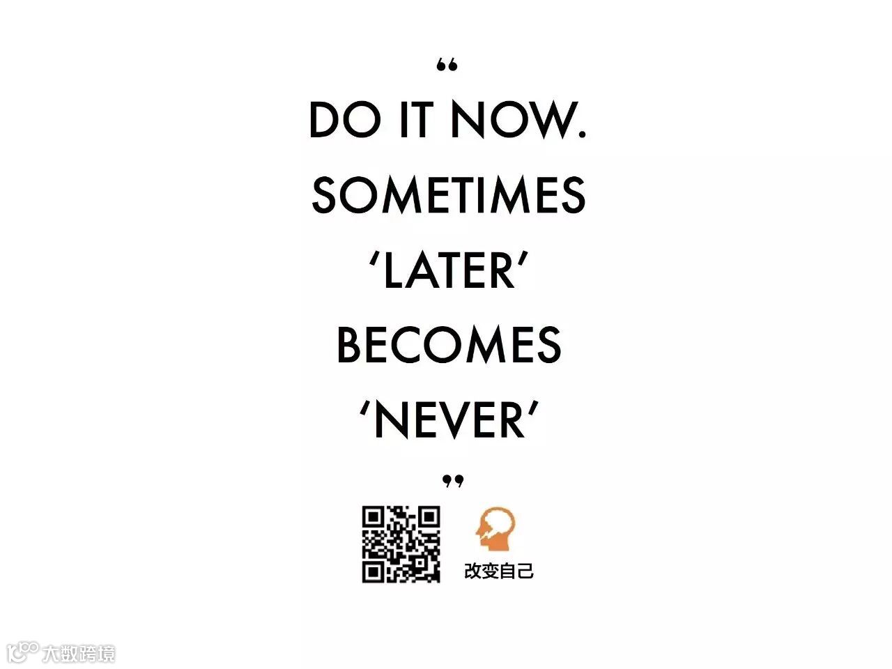 行动从来没有所谓完美时机。不论是启动项目,享受家庭生活,写一本书,改变习惯,或者培养习惯,从来就没有完美时机。一旦意识到这一点,你每天都能做更多有意义的事情。