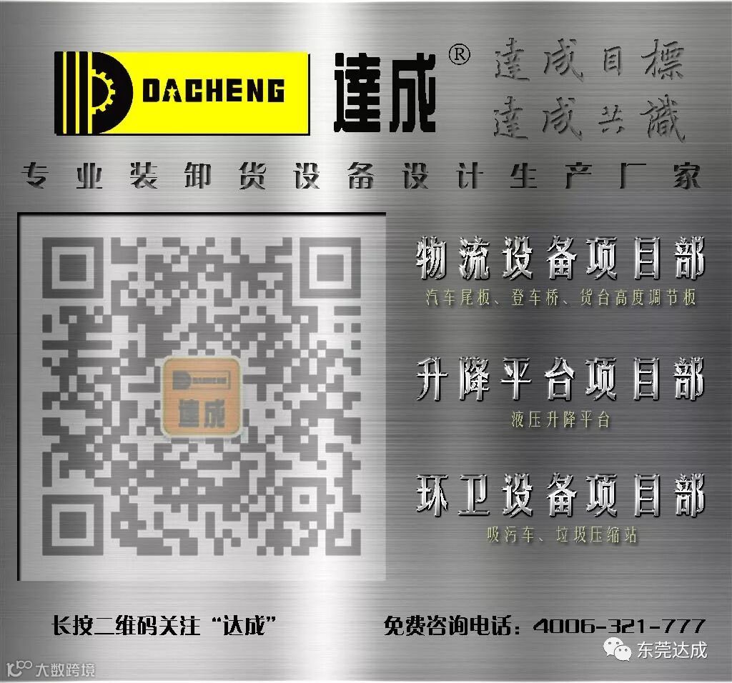 东莞市达成机械设备制造有限公司,是集研发、生产、销售于一体的市政府重点支持的高科技民营企业,主要产品有汽车尾板、装卸货平台、新型吸污车、液压升降平台等。热线电话:4006-321-777