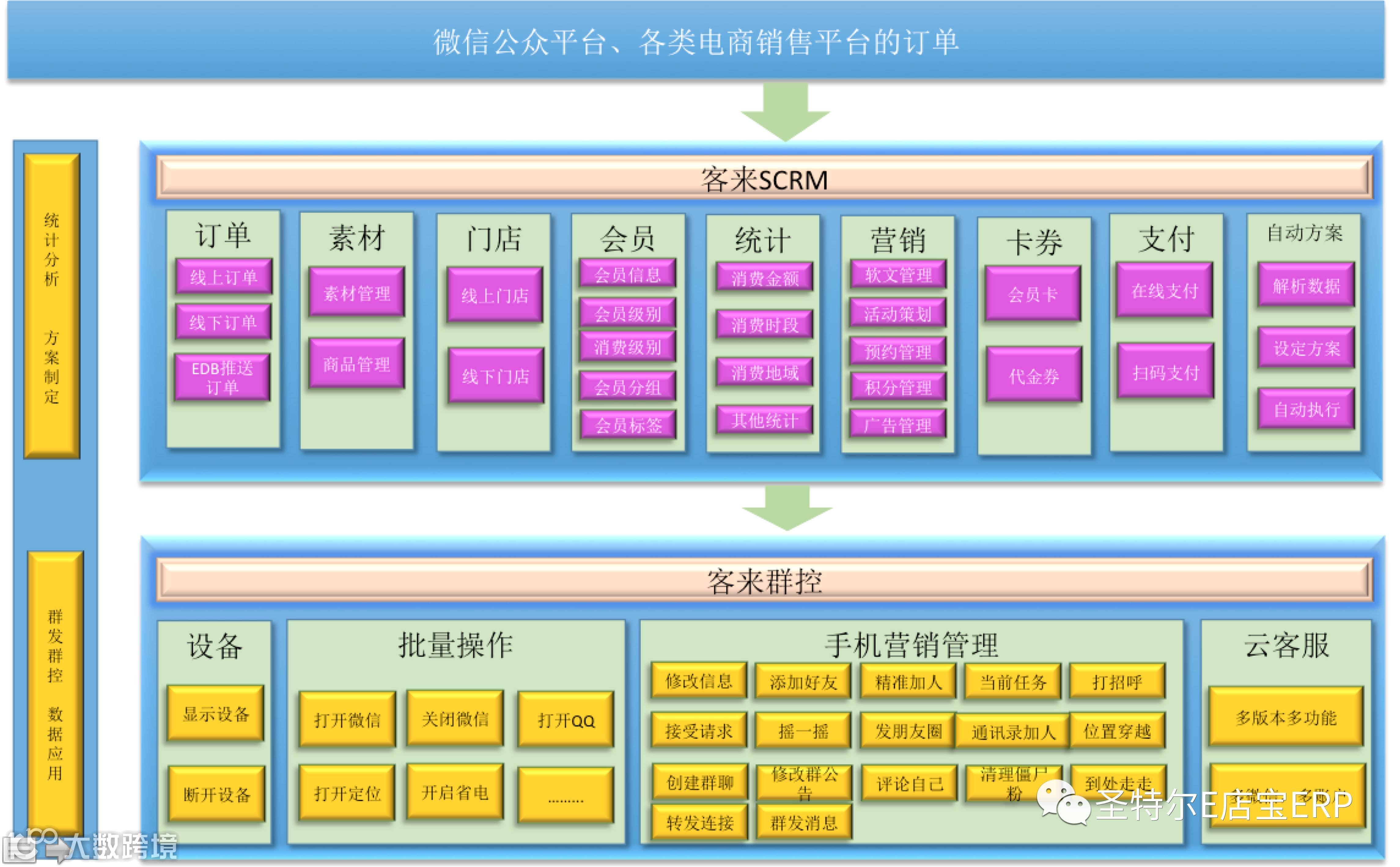 通过SCRM的数据分析客户行为,对客户进行分组、打标签,通过群控系统进行精准沟通、服务。