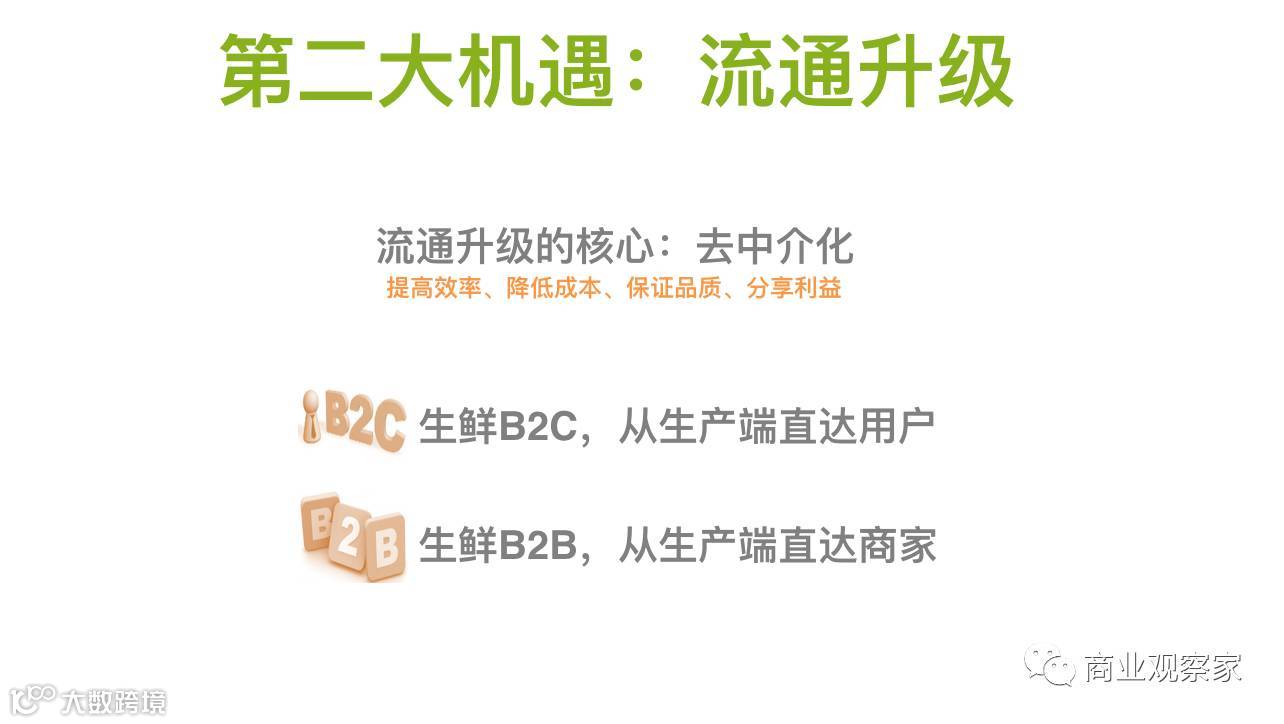 我们说B2C,从生产端直达用户,在流通升级过程中,核心是“去中介化”——提高效率,降低成本,保证品质,分享利益。