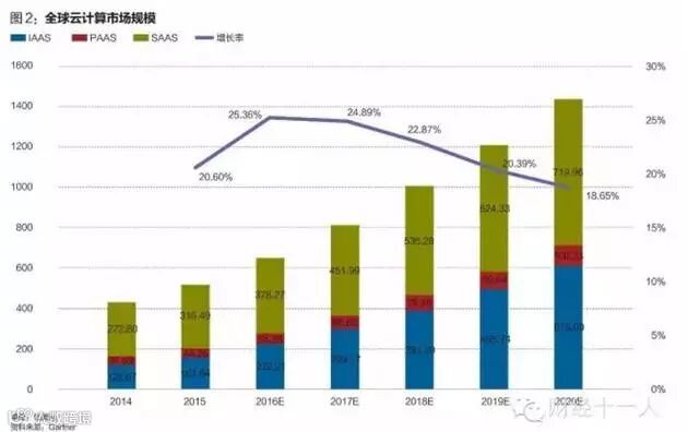 市场研究公司Gartner报告称,全球公共云服务市场规模今年有望达到2040亿美元,每年的增长率接近20%。另一家研究公司Market Research的预测数据显示,2020年全球云服务市场规模将超过2700亿美元。