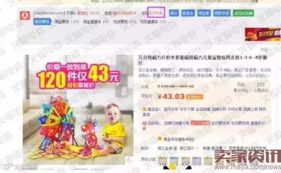 直通车总的可以加四张创意图,前期创意图测试的时候建议全部加满不一样的创意图,采用轮播方式。创意图最好参考同行做的好的图来制作,不要自己原创设计,自己原创设计很难做出高点击率的创意图,比较拖时间。找同行销量高的,或者销量低而在线人数高的创意图。就如下面这个磁力片,咱们多观察两天,如果没有什么活动,就有这么大流量,那么他直通车的质量分肯定也很高。咱们模仿着他去做就好。