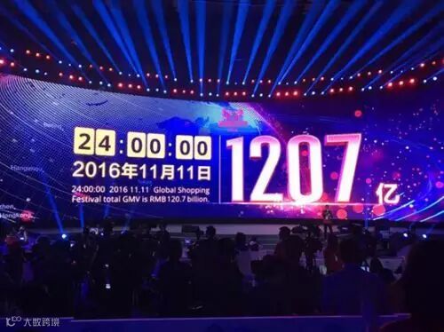 此前,11日6时54分53秒,2016天猫双十一交易额超571亿元,超越2014年双十一全天;11日15时19分13秒 ,2016天猫双十一全球狂欢节交易额912亿,无线交易占比83%,超越去年全天交易额;11日18时55分36秒,2016天猫双十一交易额超1000亿元,无线交易占比82%;11日22时12分03秒,天猫双十一交易额首次到达1111亿元。