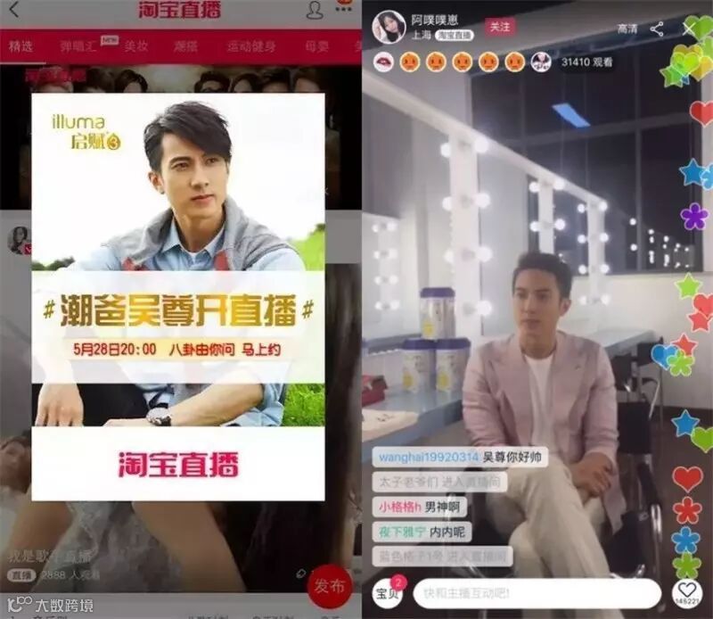 早前在《爸爸回来了》中,知名明星吴尊携女儿出演积累超高人气,而这位超帅奶爸也登上淘宝直播,推荐知名奶粉品牌“惠氏启赋”产品。在直播时长1小时内,吴尊让观众观摩自己拍片现场和分享育儿心得,达成超过120万人民币的交易量,直播期间单品转化率创下惊人的36%记录,是日常转化率的足足七倍之多。