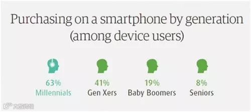 2016年购物季期间,移动电商交易额将增长60%。据UPS和comScore称,63%的“千禧一代”(Millennials,1983-2000年出生)和41%的“失落的一代”(Gen Xers,1960-1975年间出生)喜欢通过手机购物。