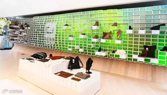 由900个7寸屏幕组成,每个电子货架可以靠墙齐平,或延伸出一定空间给商品(如鞋子)提供放置位置。