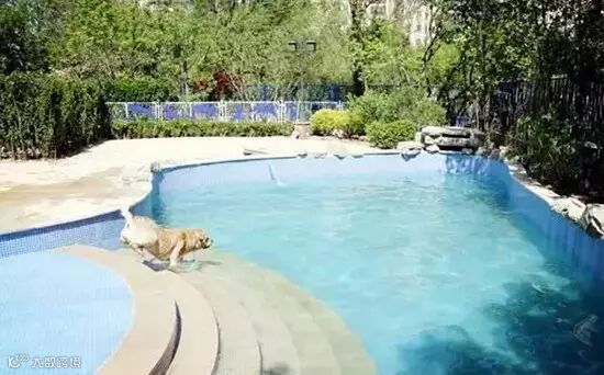 户外宠物乐园内设660平方米国际标准户外赛环,铺设与国际高尔夫球场质地相同的草坪,41间宠物酒店公寓、70平方米游泳池。