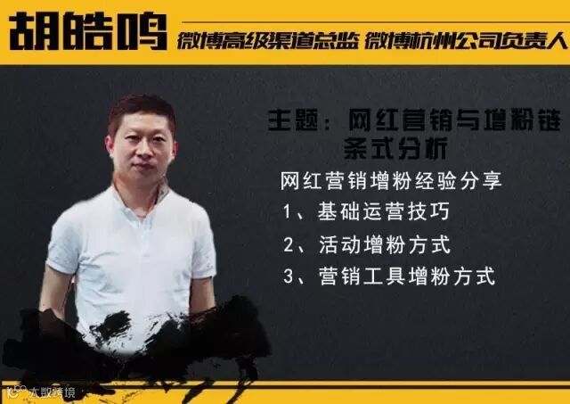 胡浩鸣—胡总他是新浪微博杭州的负责人,所有跟导粉相关的事情,如何用最便宜的方法导粉,都可以找胡总,整个杭州的电商公司都从他手上去买粉丝。我希望大家明白“不要觉得这个事儿有多难”,很多时候就是非常简单,你们也都会关注第一批网红,他们的条件根本就不怎么样,为什么能抓住那一波的红利,非常简单,就是愿意花钱,花了十万块钱买了粉丝之后,后面第二个月就能挣十万块钱回来,为什么不呢?所以你会发现一大堆的网红就是这么来的。