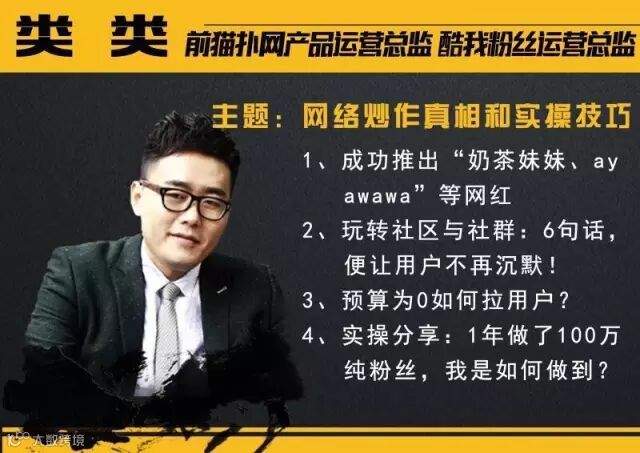 最后类类—你们可以网上搜,类类是原来猫扑的产品的总监,猫扑的所有的网红,像奶茶妹妹等等红人的炒作都是类类在负责。他之前的一份工作是360奇酷手机的粉丝总监,整个360手机的粉丝的策略都是在他手上,所以对于事件炒作他是非常擅长的。