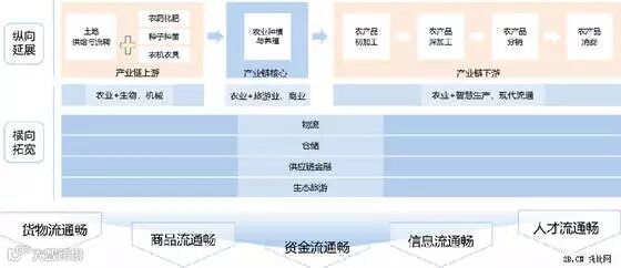 产业链的核心就是包括养殖牲畜在内的农产品的产出,并围绕产业链的核心延伸出整个农业B2B电商的上下游,其中不考虑上下游的终端C类用户及其业务。《报告》研究的主要集中在农业产业链中B2B电商运营模式部分。产业链在纵向延展的同时,也在横向的拓宽,包括伴随整个农业B2B电商业务展开的物流、仓储、供应链金融等,另外随着生态旅游的不断红火和智慧城市的实施普及,乡村生态旅游也渐渐的成为了产业链上的一种不可缺少的业务模式,这四种业务模式存在了整个农业B2B电商产业链始终。最终,纵横的产业链交错衔接构成了农业B2B生态,生态中需要每一个环节的有机结合并打造“五流畅通”,即农业货物的流通顺畅,农资农产品所有权交易顺畅,交易资金顺畅,农业资讯数据信息的对称,农业电商人才的完备,综合一起共同打造了农业B2B电商良性循环的运作机制。