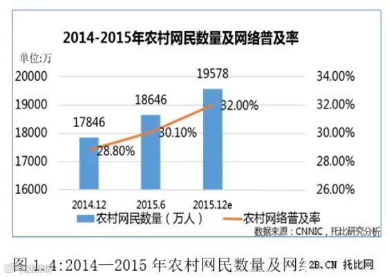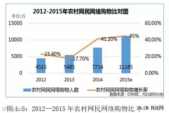 农村经济向好的态势为农民互联网的使用率提供了经济温床,另外在国务院所颁发的《关于加快高速宽带网络建设推进网络提速降费的指导意见》的政策推动之下,农村地域性的互联网呈现出了一派生机勃勃的加速发展态势。农民网购的习惯也在渐渐的养成。根据CNNCI所发布的《2014年农村互联网发展状况研究报告》可以得知,2012到2014年短短的3年之内中国农村网民网购人数从4515万人增加到了7714万人,增长率达到了41.2%。这批农村网民无疑是中国农村网络信息覆盖的第一批见证者也是受益者,他们利用网络购物所养成的消费习惯深深的为农业电商的发展提供了良好的认知、引导和使用的基础。
