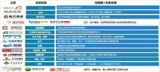 互联网+农业尚属起步阶段,而农业B2B电商还处于萌芽阶段,但其表现出的爆发力和吸金度让其他行业不敢望其项背,目前传统农业企业纷纷布局B2B领域,包括金正大、诺普信、云天化、大北农,同时阿里巴巴、京东、乐视、苏宁这样的传统互联网企业也开始涉足农业B2B领域,一些新晋的农业B2B创业型企业更是如雨后春笋般迸发出来。概括而言,当前的农业B2B电商平台中以轻模式运营的居多,这也是传统企业积极向互联网转型的动机所在,当前农业B2B电商领域依然是一片蓝海,尽管无论是纵向还是横向产业链每一个细节都有企业进行布局,但是模式的成熟度有待验证,农业B2B电商还处于窗口期,并且这个窗口期还将持续一段时间。