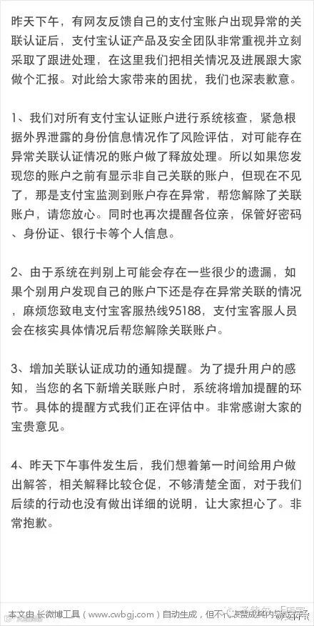支付宝方面也于昨日下午6点通过官方微博对事件进行了回应,以下为支付宝官方微博的回应原文: