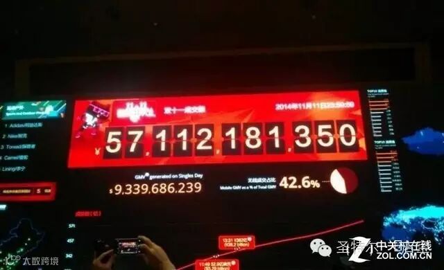去年双·11当天淘宝天猫累计交易额571亿