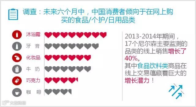 在中国,网络订购送货上门俨然平民化:46%中国消费者表示已经有过网络购物经历,尤其在快消品方面,亚洲国家快消品线上销售增长率远远高于其他国家。尼尔森报告指出,三个因素促进了电商业务的快速增长:
