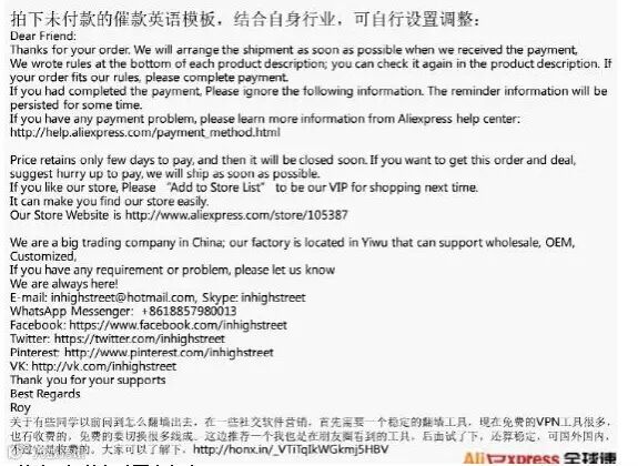 付款这方面:做好付款引导,有些客户不知道如何在速卖通上支付,但可以拍下来,导致产品被拍下而未付款。