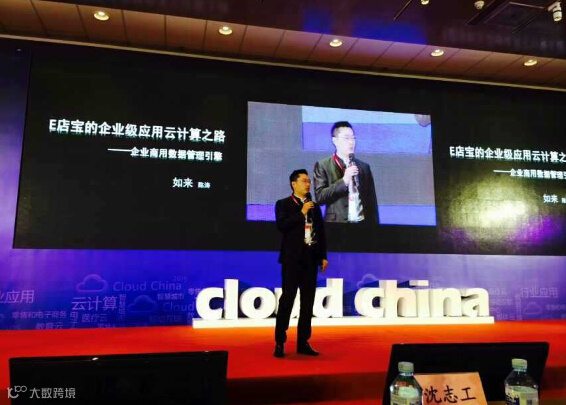 本次大会围绕着“云计算应用落地过程中的机遇与挑战”展开,作为率先提出了电子商务云整体解决方案的企业,E店宝CEO陈涛在精彩的演讲中分享了E店宝的云端漫步之路。