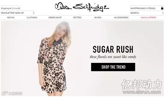 Miss Selfridge是一个女性服装品牌,是英国时尚电商Topshop的副牌,也是目前最受英国流行人士欢迎的品牌之一,在英国大街小巷都能看到Miss Selfridge的店面。活泼大胆而又年轻的设计风格让Miss Selfridge拥有一大批年轻女性消费者。
