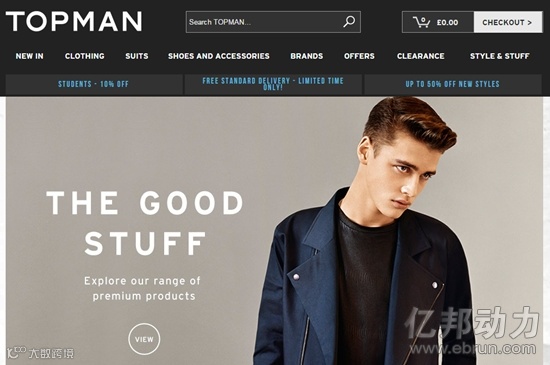 相关消息,另一家接入支付宝的英国电商——Topman与Topshop同为Arcadia的下属品牌,主要面向15到25岁的年轻时尚男士。其产品设计则简单大方,在英国同样有不少分店。