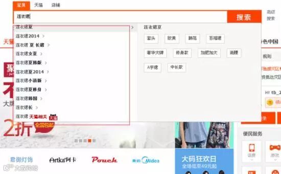 步骤是打开淘宝首页,在搜索框输入一个关键词,下拉框就会出现很多关键词。