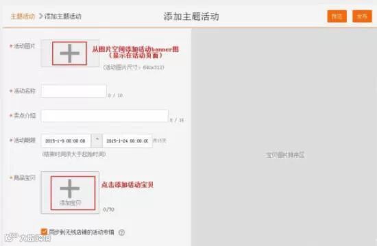 Step5添加活动信息,包括图片以及宝贝的添加。