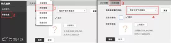 ①点击“装修”→“样式管理”→“左侧背景设置”→“页面设置”;