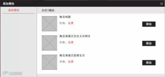 ①点击促销宝贝模块或预售模块右下角,点击”添加模块”;