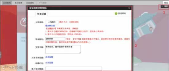 ②“上传图片”框中选择您要上传的页头氛围图尺寸是:1600*420;