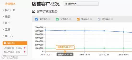 在直通车后台,首页下面可以看到这个店铺概况;该功能可以清晰的看到一定时间段内店铺客户群的变化趋势,并可以通过这些客户群体的变化,及时调整店铺的经营策略。