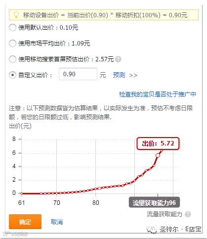 任 一时刻,关键词的当前真实出价 = 出价 * 分时折扣 * (移动端折扣 或者 站外折扣), 例如,无线直通车里,关键词设置出价为2.0元,当前时刻的计划分时折扣为60%,移动端折扣为150%,那么最终参与竞价的价格为2.0*60% *150% =1.8元。