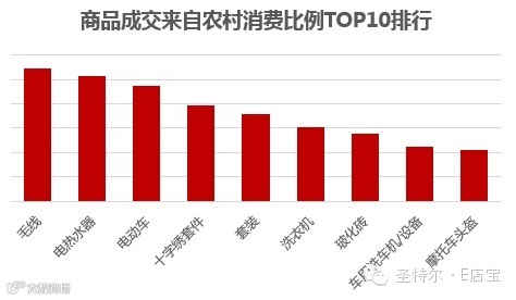 计算方法:选出2014年成交金额高于最细类成交金额平均数的最细品类,农村消费占比降序排名。