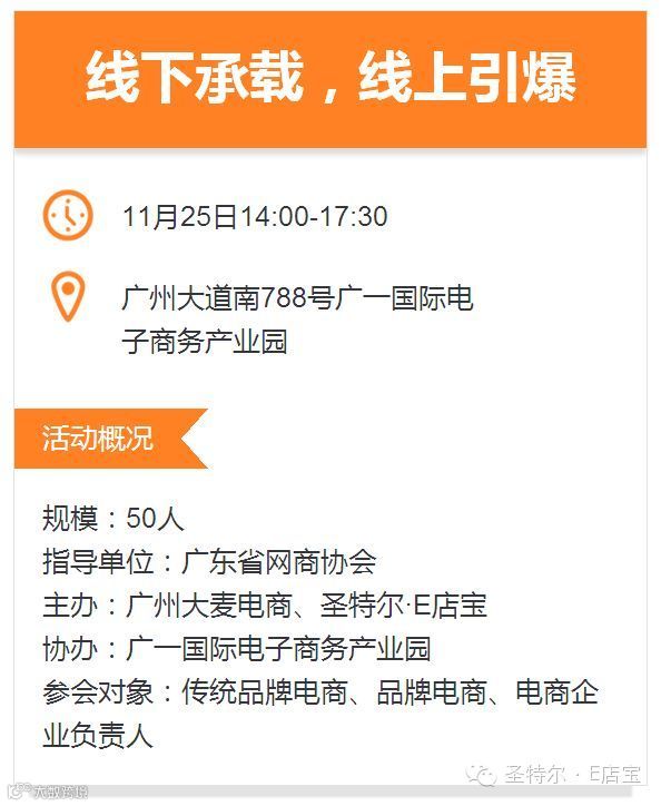 导读:传统品牌电商分享会,借力双十一大促阐述传统企业电商之道。免费参与,名额有限!!点击“阅读原文”进行报名!