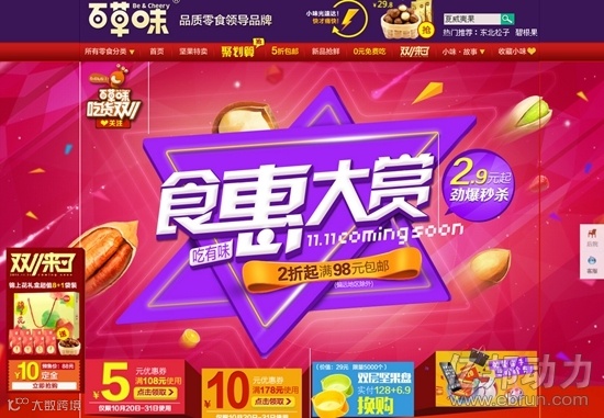 百草味天猫旗舰店的“吃货双11”活动