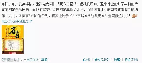 话题对比:国美在线“省旨”对比京东发出的“英雄帖”;
