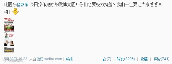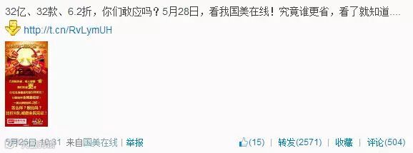 两天之后,国美在线再发“抢先省”话题,直接以“抢先省VS强先生”的话题出现,据说这个话题是之前京东操作删除的,无法求证,不过国美在线的官微是这么说的,有图有真相: