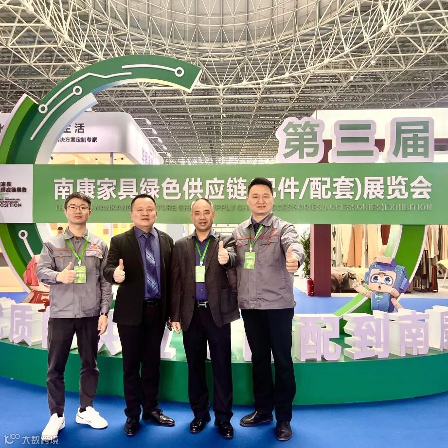紧接着,南欣控股又亮相了南康家具绿色供应链(配件/配套)展览会。作为南康家具产业的重要一环,南康供应链展旨在搭建供应链上下游企业的交流合作平台,推动家具产业的绿色、智能发展。