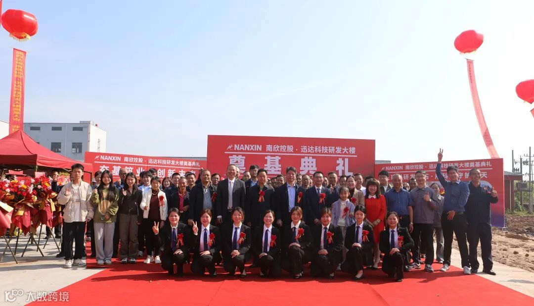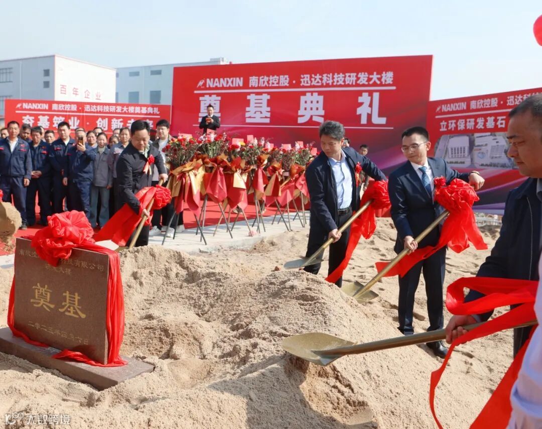 2025年4月6日,阳光洒满大地,南欣控股·迅达科技研发大楼奠基典礼在吉水县城西工业园盛大举行。现场彩旗飘扬,气氛热烈非凡,县委副书记吴国斌吴书记、白水镇书记焦龙华焦书记、园区主任朱蓬朱主任等领导嘉宾,与南欣控股高管团队及全体员工齐聚一堂,共同见证这一具有里程碑意义的重要时刻,充分彰显了南欣在行业领域的雄厚实力与坚定决心。