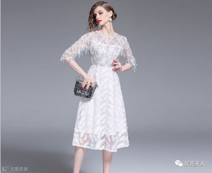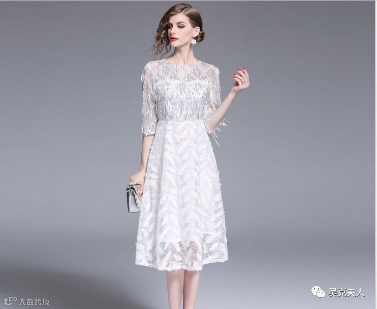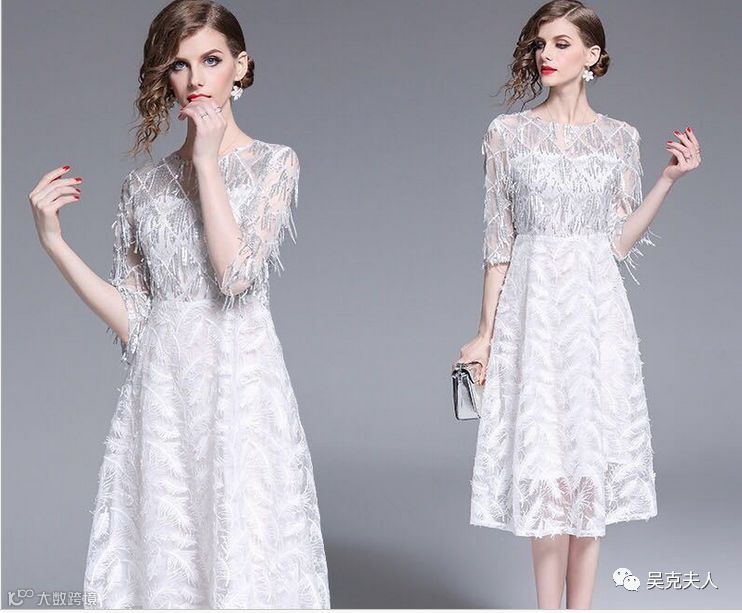 吴克夫人2019法式重工礼服裙奢华显瘦优雅气质高贵镶砖修身连衣裙潮