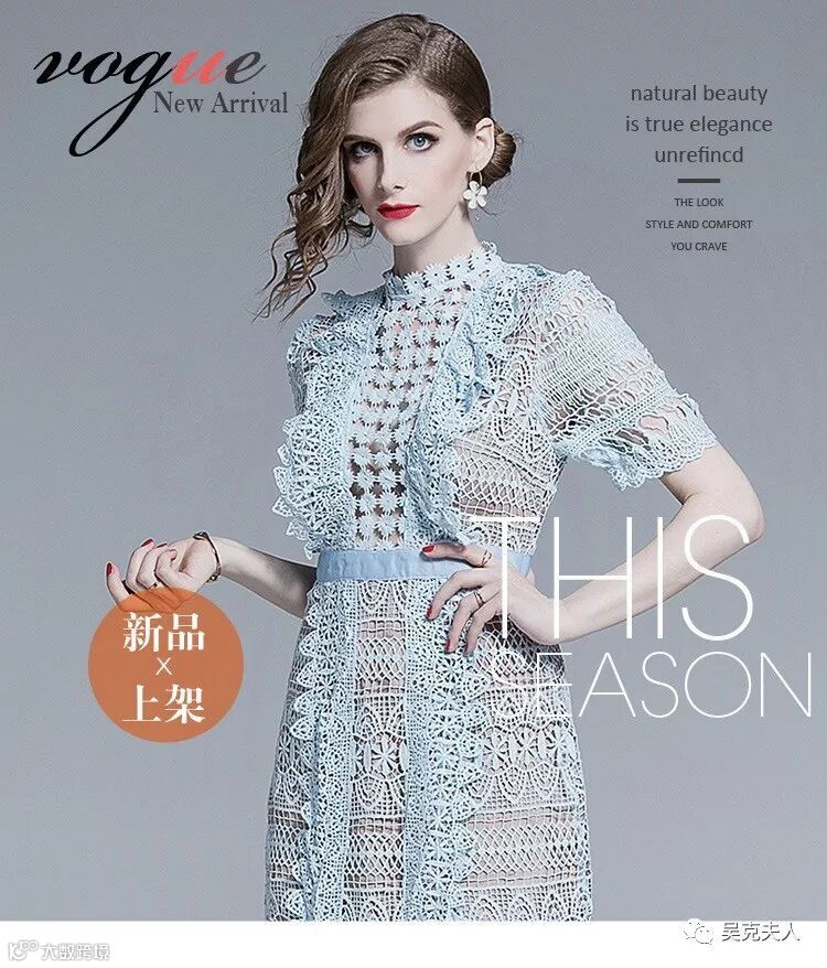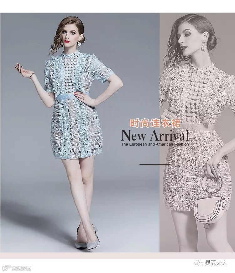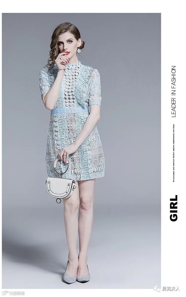 吴克夫人2019夏季时尚新款欧美高端女装走秀新品镂空蕾丝连衣裙