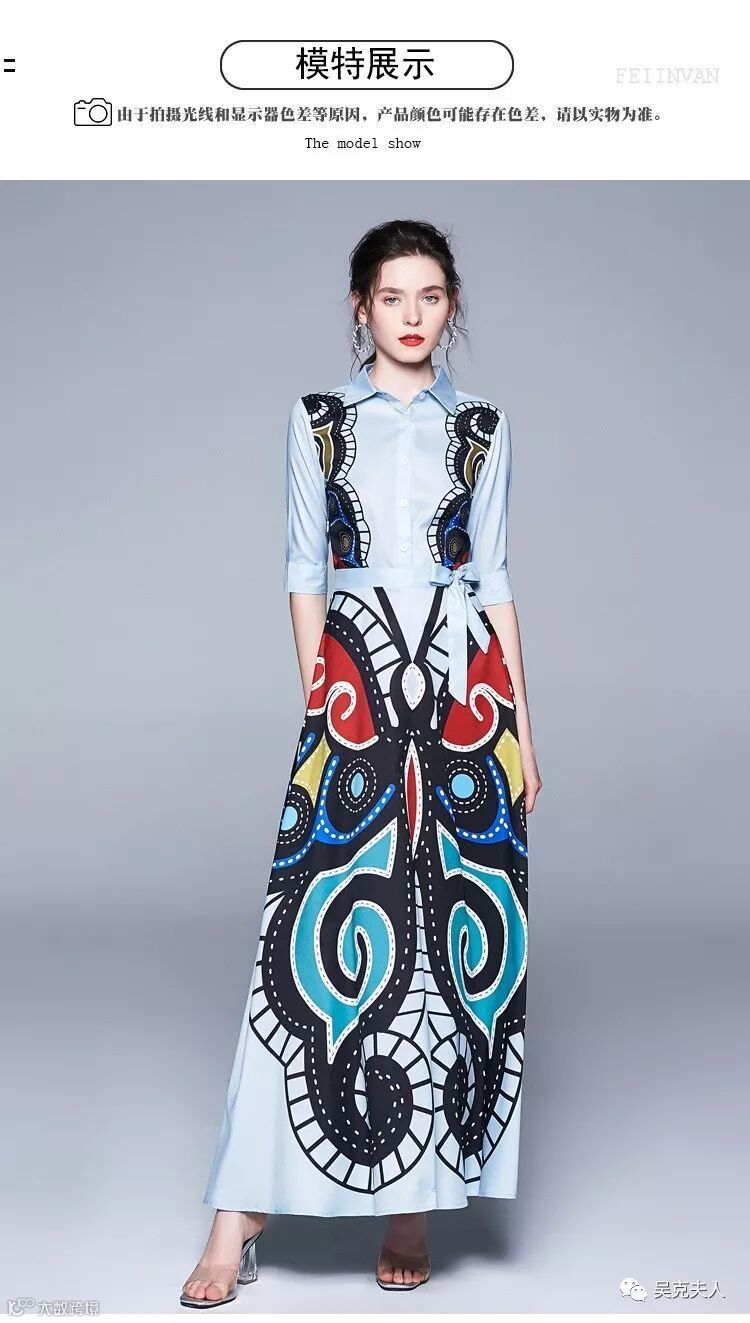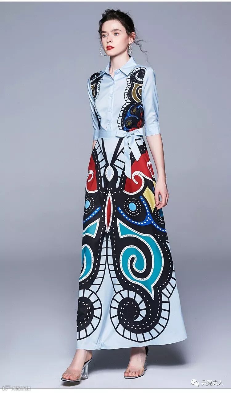 吴克夫人2019新款民族印花连衣裙时尚女裙个性化设计