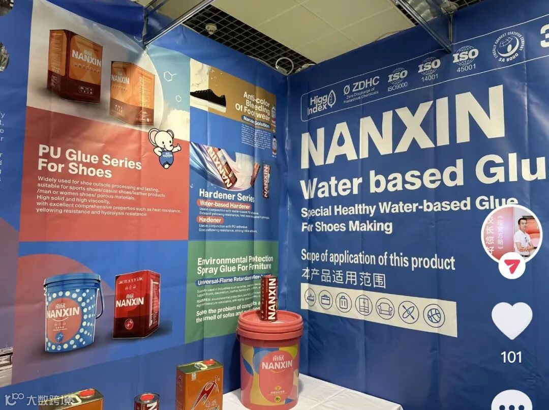 在展会上,南欣的展位同样吸引了众多国际客商的注意。公司展示了其针对俄罗斯及东欧市场特别研发的环保鞋材化工材料,这些产品不仅符合当地市场的环保标准,更在性能上满足了鞋类制造商的严苛要求。