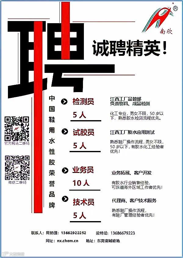 中国南欣化工集团是一家中外合作,专业从事鞋用胶粘剂,集研发,生产与销售一条龙服务的现代化高科技企业,集团前身是中国南欣化工有限公司,集团致力改善提升产品品质,出巨资从国外引进年生产能力数万吨的全套精密先进生产,检验设备,并与德国Bayer、日本DENKA、电化、东曹、台湾永成及美国、西班牙等海外公司有着密切的原材料和技术合作。