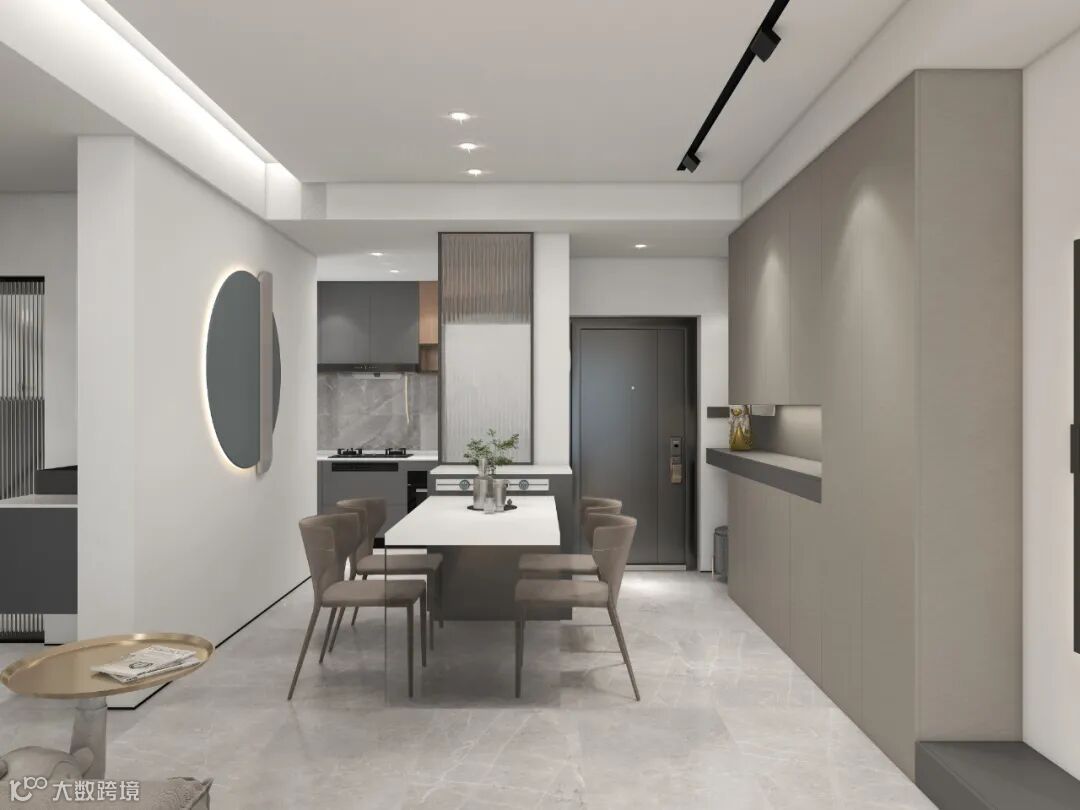极简的灵魂——灯光的吸引。全屋采用无主灯设计,灯光根据区域和功能区分点缀其间,营造舒适的氛围。