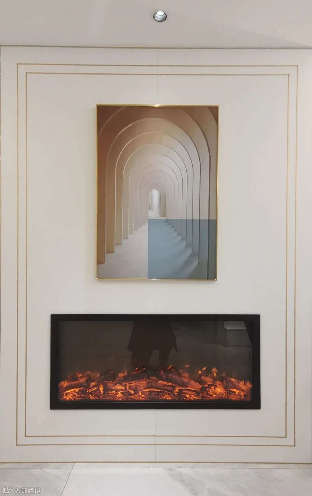 玄关正对着的是壁炉。壁炉是美式风格的经典元素,当然现在我们一般都用一个假的代替,不过这种小感觉还是非常到位的。胖哥睡觉的时候喜欢听着火炉的白噪音入眠,如果旁边也有个壁炉真是非常不错。